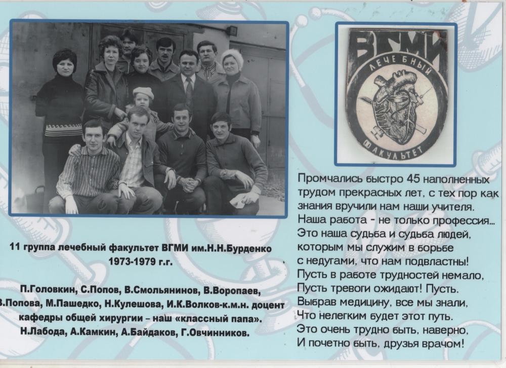 45 лет тому назад (1979) состоялся выпуск студентов лечебного и педиатрического факультетов Воронежского государственного медицинского института им. Н.Н.Бурденко.